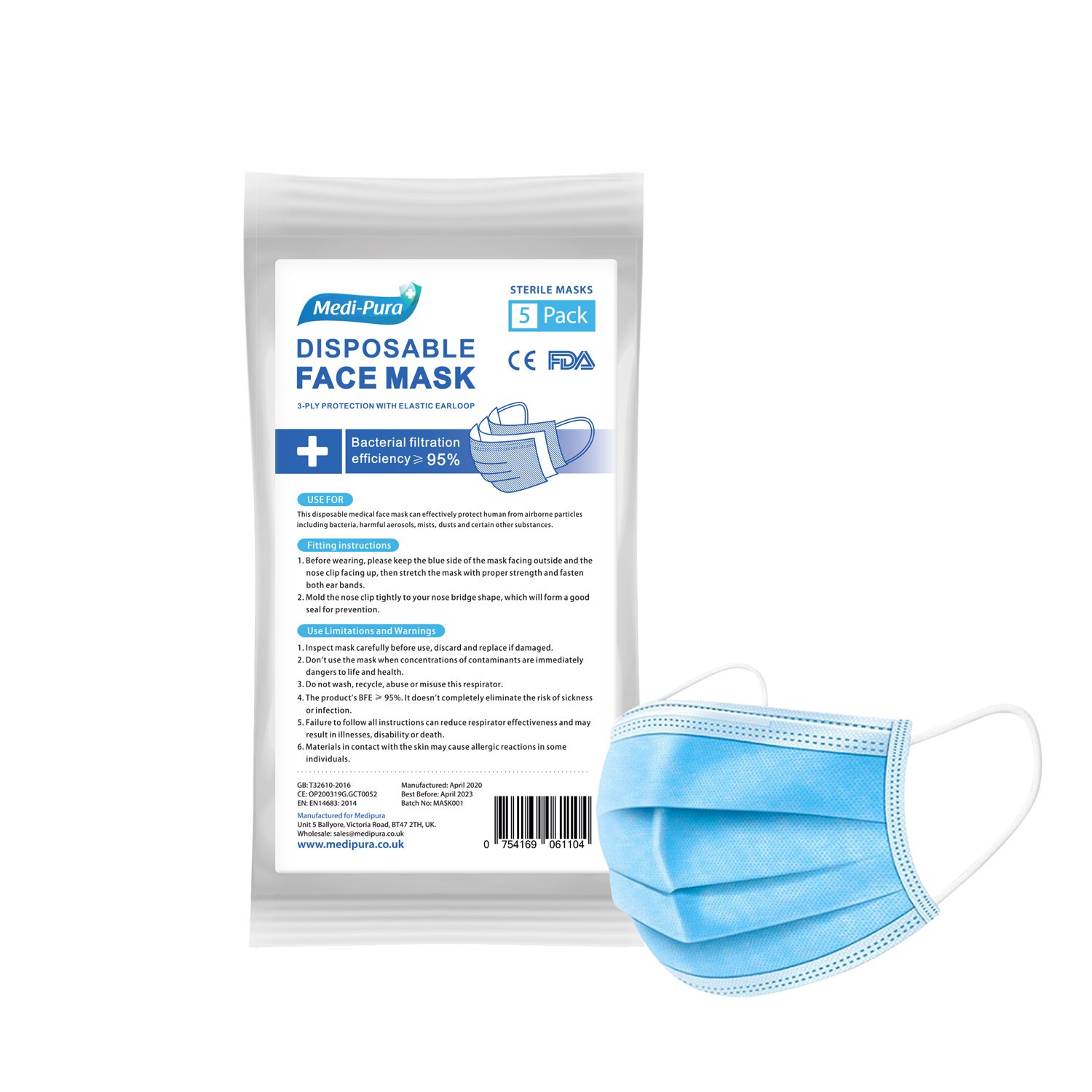 Disposable Sterile packed Medical Face Masks can help protect from airborne particles such as bacteria, dust and other substances.